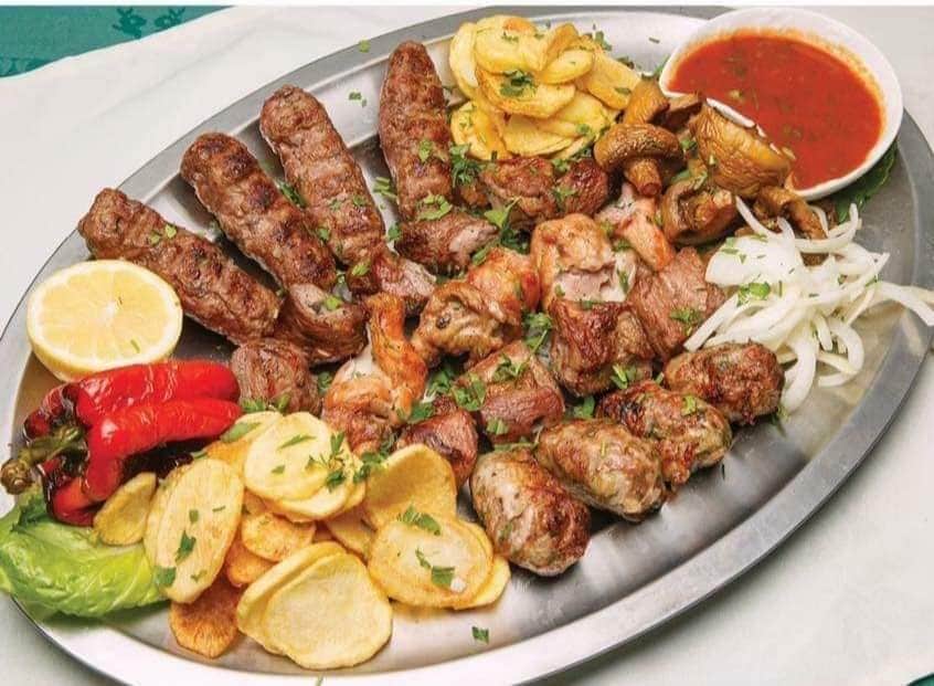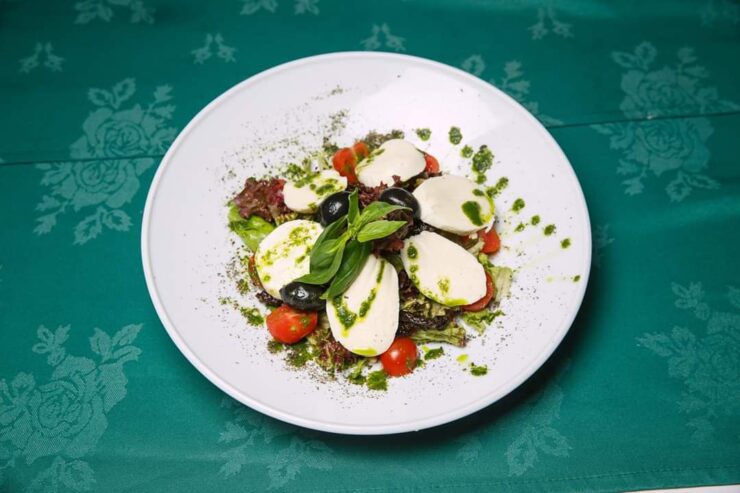 В меню ресторана — традиционные блюда русской кухни: свежие салаты, супы, холодные и горячие закуски, различные мясные и рыбные блюда, пельмени, вареники, блины, десерты — разнообразные угощения и напитки: компоты, морсы, квас и др. Кроме того, вы найдете в меню традиционные блюда кавказской и греческой кухонь.